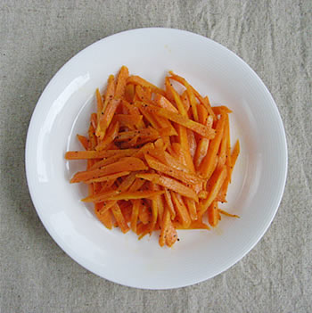 2.フライパンにオリーブ油を熱し、にんじんを軽く炒めたら、ふたをして蒸し焼きにする。
