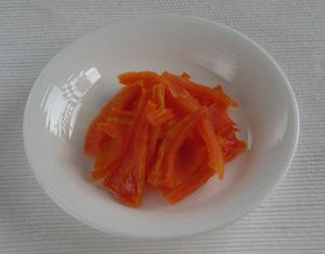 2.酢と砂糖を混ぜて、にんじんにかけ、電子レンジで、30秒加熱する。