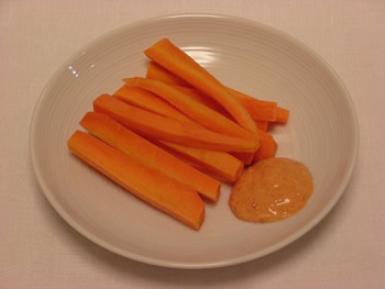 ゆでたにんじんに、豆板醤とマヨネーズを混ぜたソースをつけるだけ!の簡単レシピ