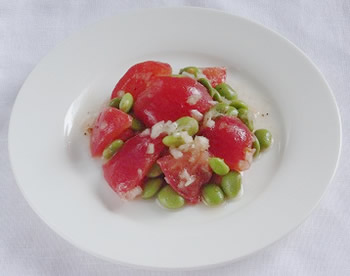 2.トマトは、一口大に切り、枝豆はさやから出しておく。