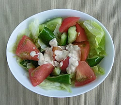 サウザンドレッシングは、マヨネーズとケチャップを混ぜるだけで簡単にできます。ピクルスは入れなくてもいいですよ!