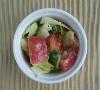 1.トマトは一口大に切る。きゅうりとレタスは手でちぎる。