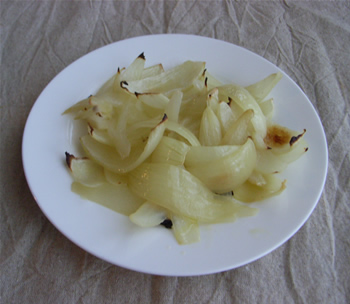 たまねぎをくし切りに切って、オリーブオイルと塩をかけただけ。あとはオーブントースターに入れて、焼き目がつくまで焼くだけです。
