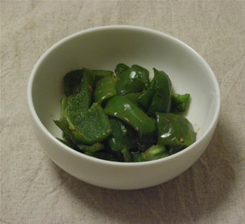 3.しょうゆとおろししょうがを混ぜておき、ピーマンが熱いうちに和える。