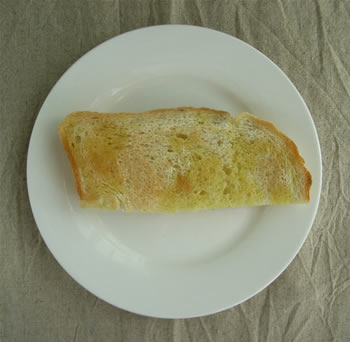 2.パンに、オリーブ油を全体にかけて、オーブントースターで焼く。
