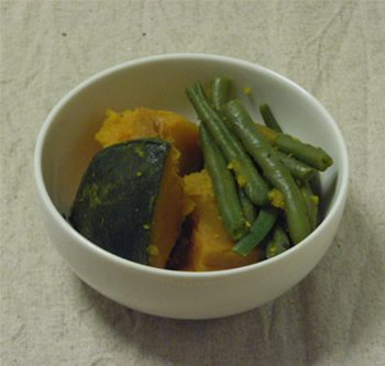 冷凍のかぼちゃと、いんげんで簡単にできちゃいます。