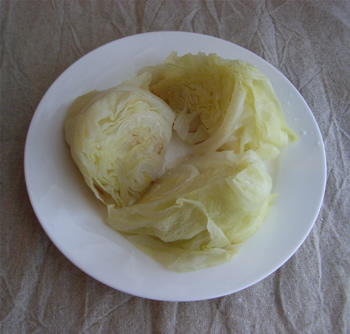 (3)キャベツが柔らかくなったら、取り出して、塩とごま油をかける。