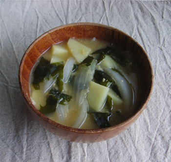 4.たまねぎがやわらかくなったら、乾燥わかめを入れ、仕上げにお味噌を溶きいれたら、出来上がり。
