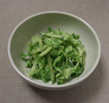 1.レタスは千切り、きゅうりも千切りにして、塩を振ってしなっとさせる。マヨネーズ、こしょうをかけて混ぜる。好みでしょうゆをかけたり、すりごまをかけても。