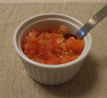 トマトを1cm角位に切り、オリーブ油と塩と混ぜる。
