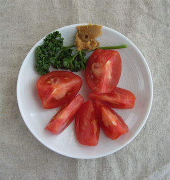合わなくはないのですが、正直言うと、美味しいトマトは何もつけないほうがおいしいです。トマトがおいしくなかったときに試してください。