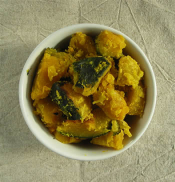 一口大に切ったかぼちゃを、水と共に鍋に入れ、やわらかくなるまでただゆでただけ。これだけでも十分においしいのだ。