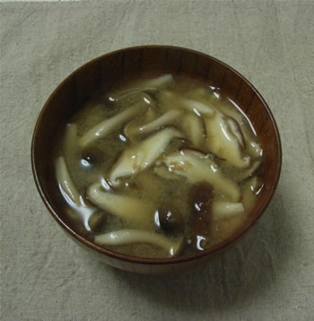 しいたけ、しめじ、かつおぶしだけをただ入れただけのお味噌汁。