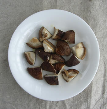 1.しいたけは、軸を切り落とし、4等分に切り、オーブントースターで10分程焼く。器に盛り、塩や、オリーブ油をかけて頂く。