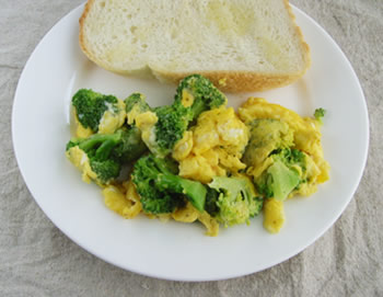 3.フライパンにバターを溶かし、2の卵液と、ブロッコリーを入れて全体を混ぜて、手早くスクランブルエッグにする。