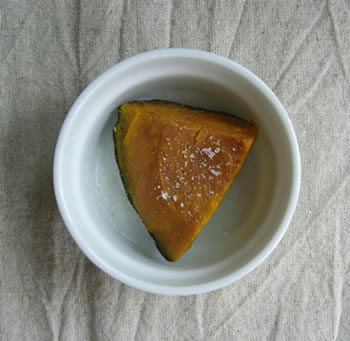 お塩をかけることにより、かぼちゃの甘みをより感じることができます。