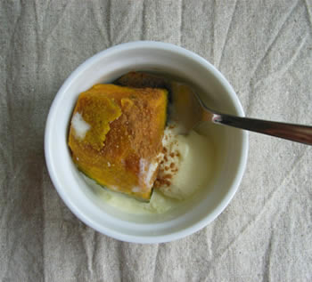 冷凍かぼちゃを電子レンジでチンして、お塩をかけただけ。