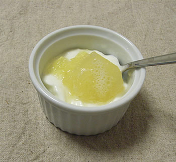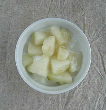 ヨーグルトに、ラフランスを刻んで入れて食べた。
